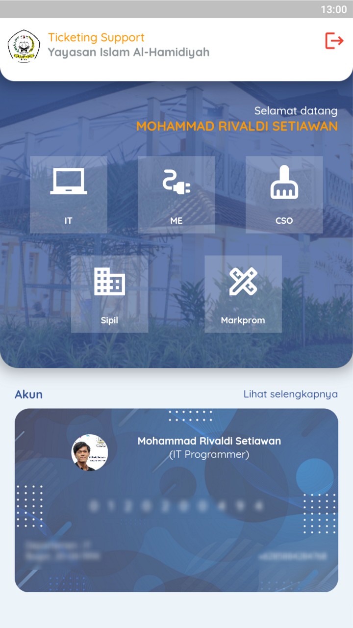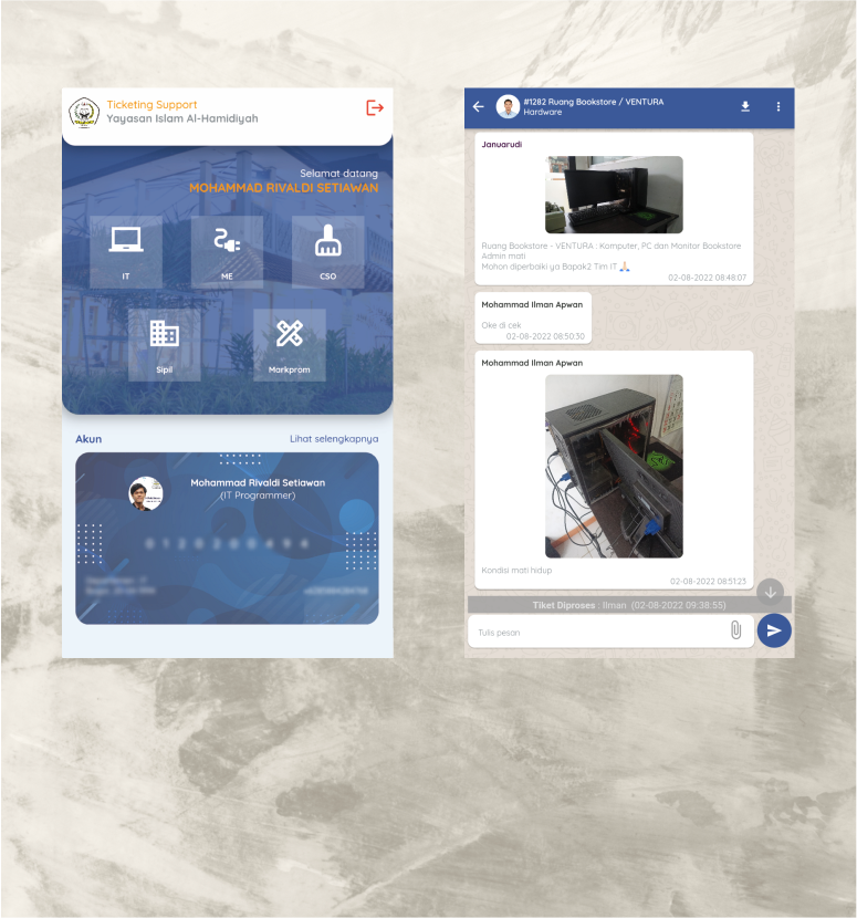 Ticket support for IT, Mechanical and Electrical (ME), Cleaning Service Officer (CSO), Civil & Markprom services.